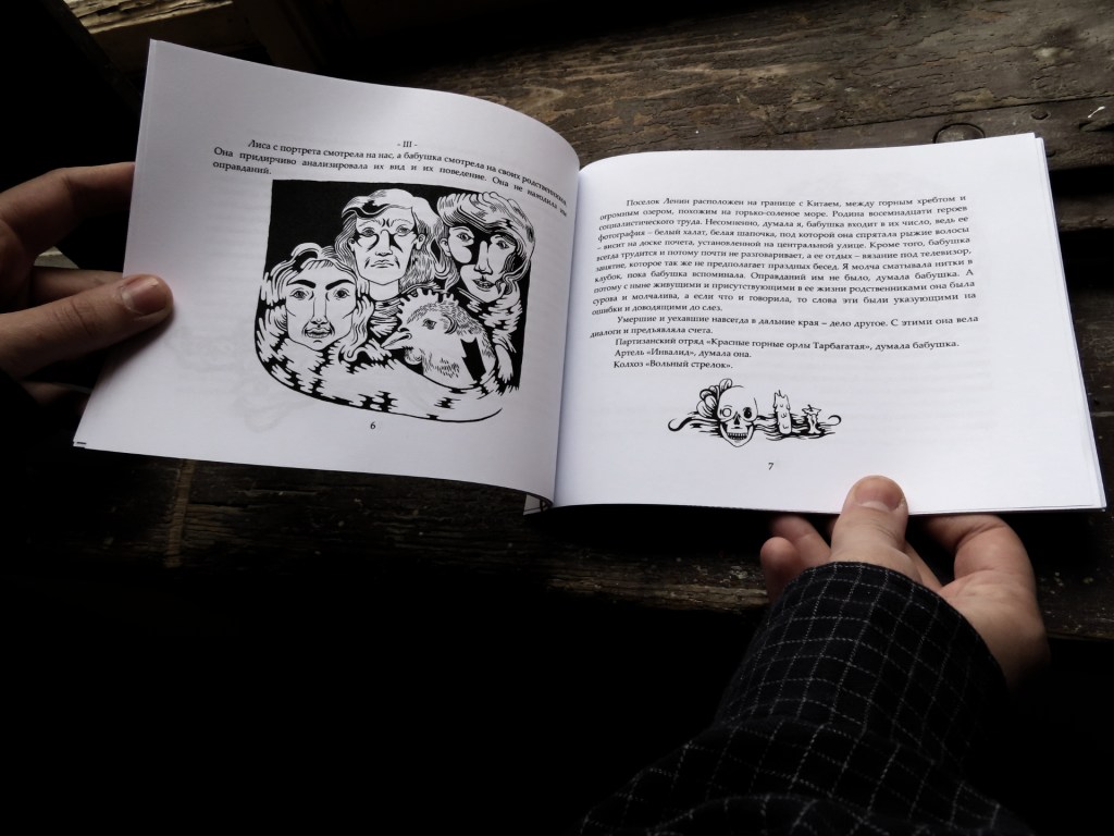 Мы сами верстаем и переплетаем наши гниги. Рисунки — это копии работ тушью или оригинальные линогравюры. Пишите нам на адрес contact@gnigi.com — мы пришлём вам гнигу и ответим на вопросы. Приятного чтения!